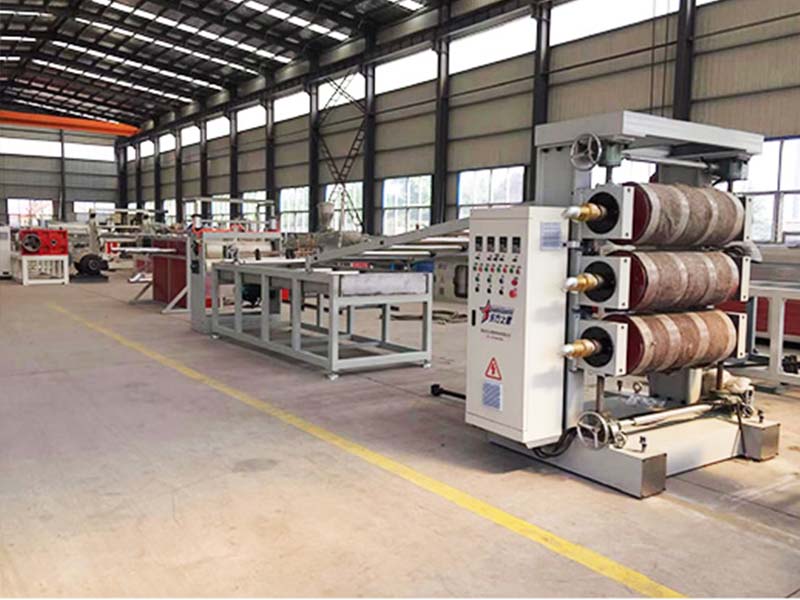 PVC透明軟門簾生產(chǎn)線:可生產(chǎn)寬度200-600毫米、厚度0.8-3毫米的PVC透明塑料片材。該設(shè)備采SJ90或SJ-120單螺桿擠出機、T型彈性模口可調(diào)模具、立式或斜45度三輥壓光機、三合一水溫機、不銹鋼冷卻托架裝并裝有寬幅可調(diào)切邊刀、橡膠輥牽引機、雙工位氣漲軸收卷機。所生產(chǎn)的片材表面光澤,通透無暇,柔軟,無裂縫、無異味、無氣泡、柔軟耐寒、耐磨、耐酸堿、耐腐蝕。